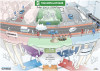 CROW heeft een praatplaat laten maken om intern en extern aan te geven waar zij mee bezig is als het gaat om kennis rond de toegankelijkheid van verkeer en vervoer en de openbare ruimte. De plaat laat onderscheid zien tussen de systeemwereld en de leefwereld. De systeemwereld gaat over de onderliggende processen die nodig zijn om tot een goede toegankelijkheid te komen. CROW maakt hiervoor gebruik van de ‘roos van CROW’, een model dat komt uit de wereld van assetmanagement en de stappen laat zien van beleid tot uitvoering. Uiteindelijk slaan de resultaten van dit werk neer in de leefwereld, de situatie op straat. Hier zien we de diverse modaliteiten (auto, OV, fiets, voetganger) en situaties (parkeren/hubs, wegwerkzaamheden, weersomstandigheden). Voor al deze aspecten heeft CROW kennis beschikbaar. Zie hiervoor de kennisbank of de ‘aan-de-slag-pagina’s’ op www.kennisnetwerktoegankelijkheid.nl.